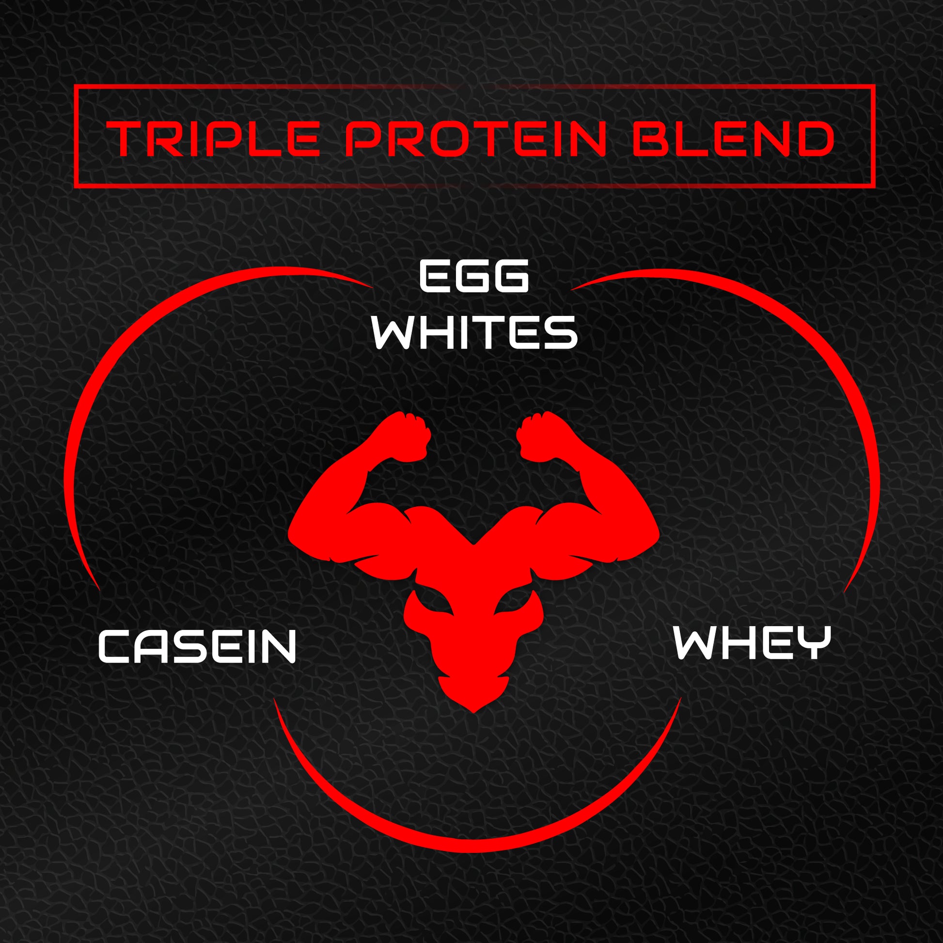 Our signature triple protein blend combines both fast and slow digesting proteins to provide an extended release of amino acids. As a result this gives your body a constant flow of muscle building protein for a longer period of time.